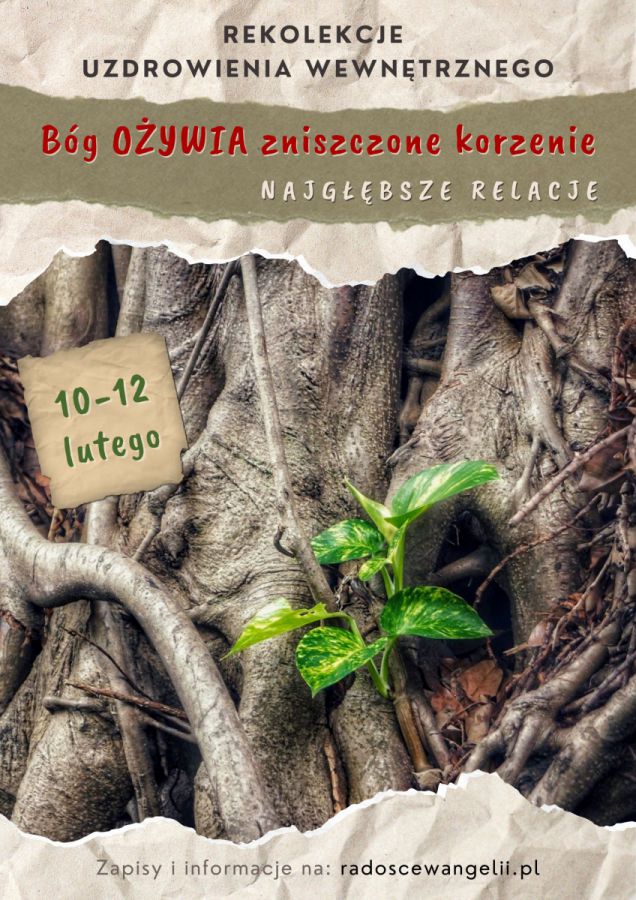 - rekolekcjach uzdrowienia wewnętrznego “Bóg ożywia zniszczone korzenie”, w terminie 10-12 lutego, podczas których będziemy doświadczać uzdrawiającej łaski Bożej miłości szczególnie w najbliższych relacjach z naszymi rodzicami i, jeśli mamy, także z dziećmi – informacje na plakacie w załączniku oraz na https://radoscewangelii.pl/aktualnosci/rekolekcje-uzdrowienia-wewnetrznego-bog-ozywia-zniszczone-korzenie-10-12-02-2023/ a także jako wydarzenie Fb https://fb.me/e/3UsNXne1H